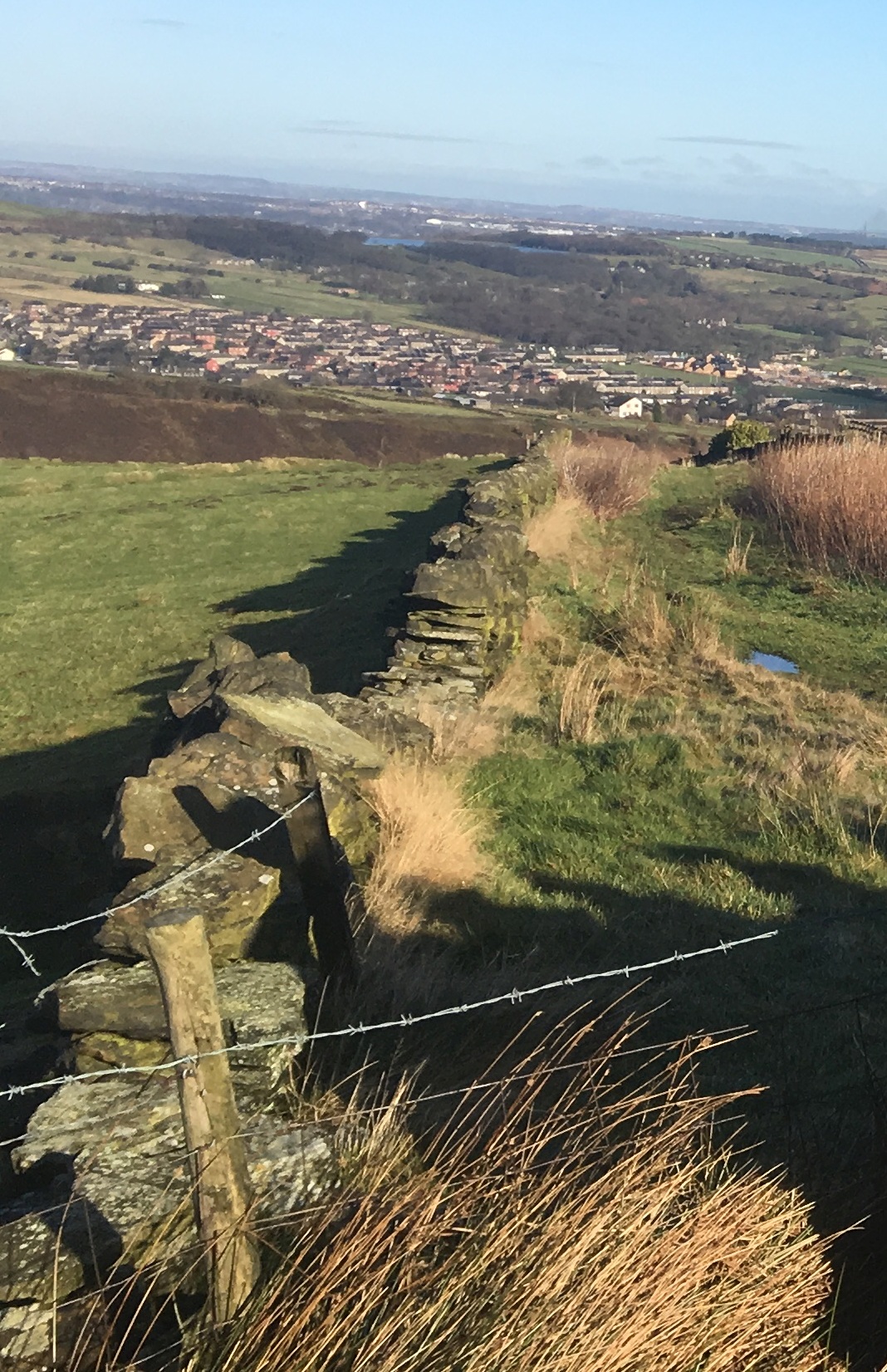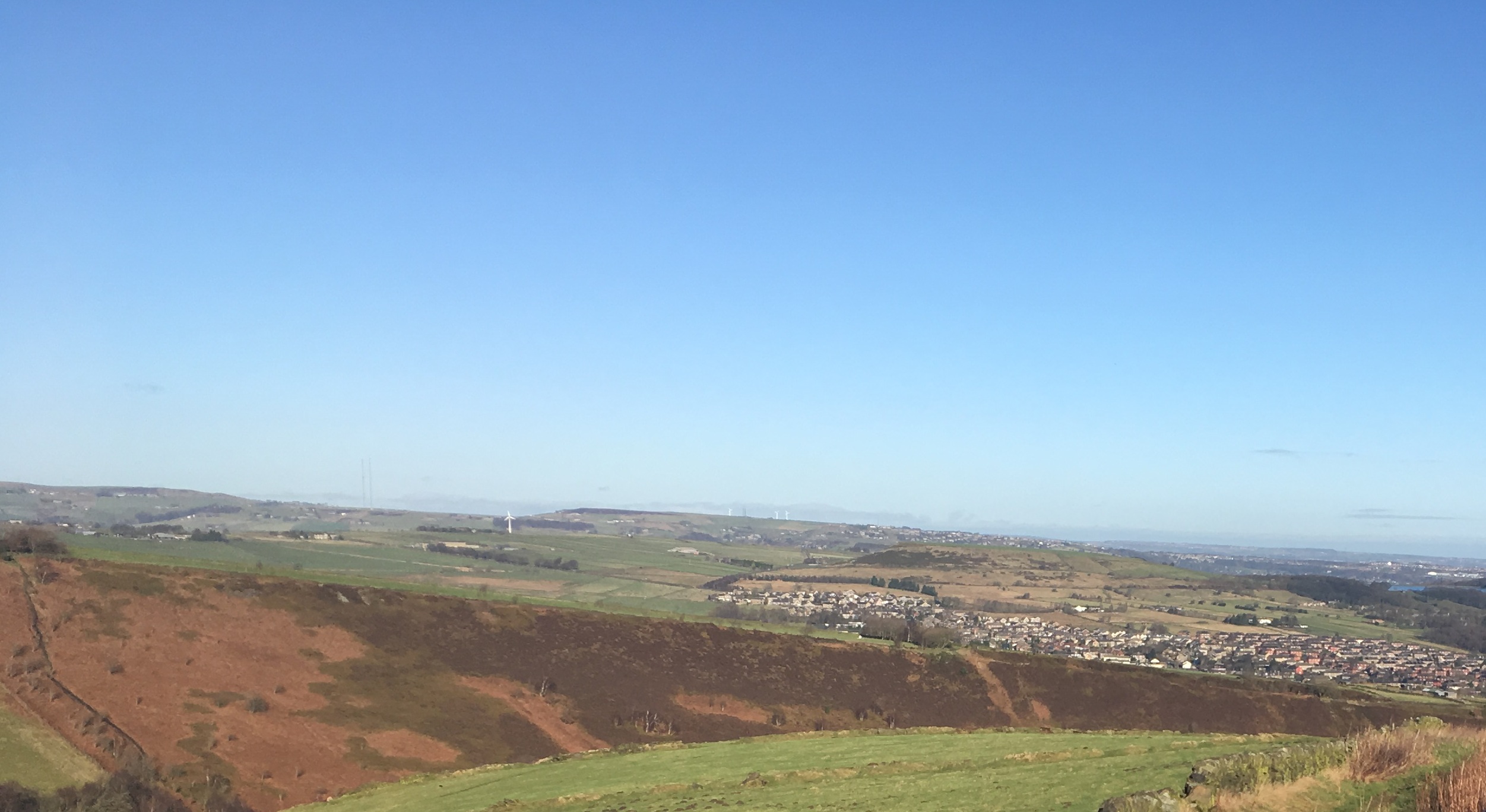 Walk Summary: Easy 5.3 mile circular walk, all on tracks from Huntsman pub via Harden Moss, Royd Wood and Bradshaw.