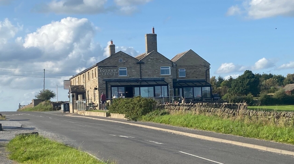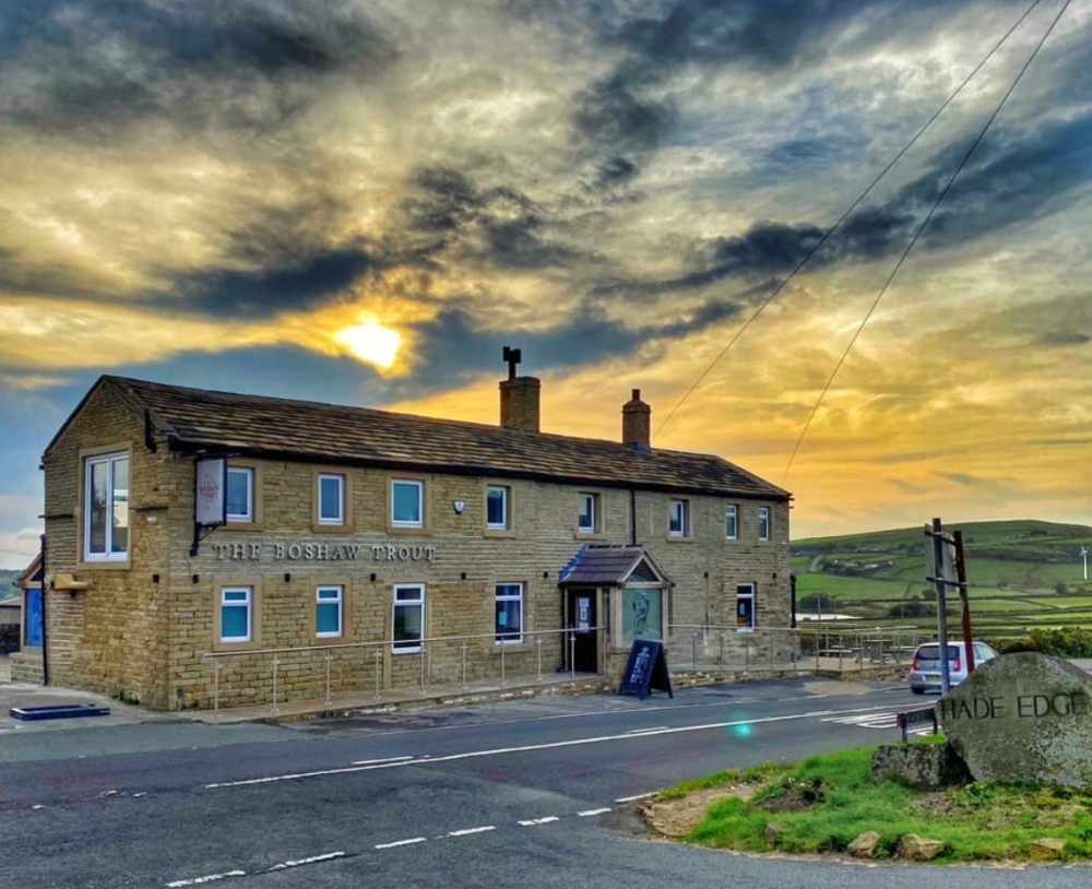 Pub summary: Boshaw Trout is an independent family run pub offering accommodation, good quality food, and a range of real ale and cask beers from the Nook Brewery in Holmfirth. Cracking views of the Boshaw reservoir and local hills from the pub dining area and garden.