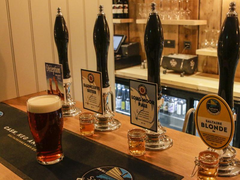Beer & real ales: Good selection of real ales and ciders available including Timothy Taylors Landlord, Timothy Taylors Golden Best, Barnsley Bitter, Farmers Blonde, Farmers Belgian Blue, Saltaire South Island, Small World beers.