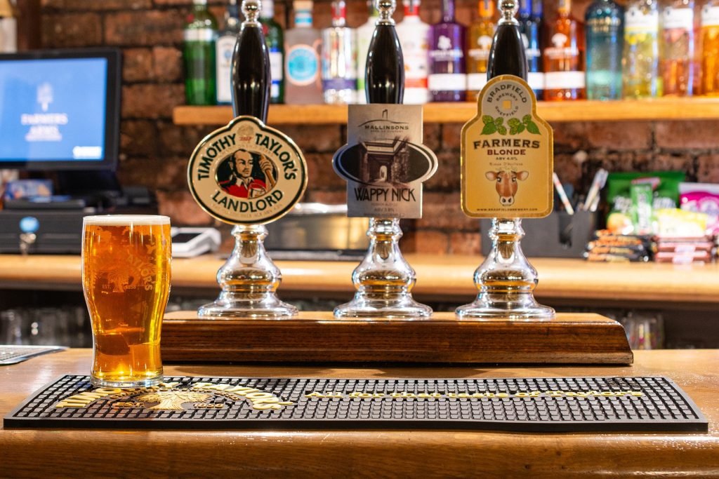 Beer & real ales: Selection of real ales including Timothy Taylors and Bradfield Farmers Blonde